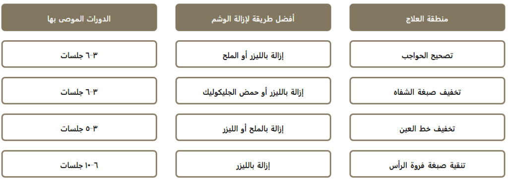 استكشف مناطق علاجنا والدورات الموصى بها للحصول على إزالة الوشم الدائم بأمان وفعالية مع نتائج مثالية.