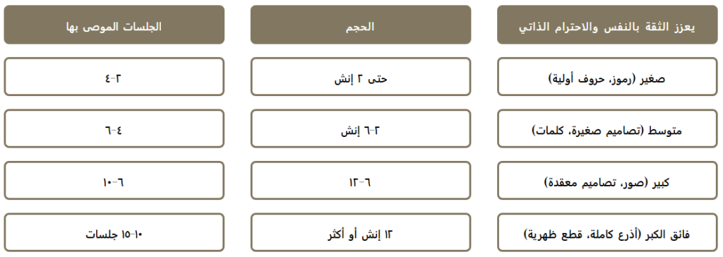نوع الوشم، الحجم، والجلسات الموصى بها